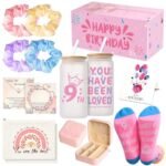 - Perfect 11-in-1 Gift Set – This all-in-one package includes a frosted cold drink cup with bamboo lid and glass straw, 4 scrunchies, a bracelet, a necklace, a pair of birthday socks, a mini storage box, a canvas bag, and a balloon greeting card – the ultimate birthday gifts for 9 year old girl.