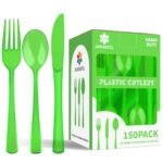 150 Pack Plastic Silverware,Disposable Cutlery Set Heavy Duty Utensil Sets 50 Forks 50 Knives 50 Spoons for Brithday, Wedding,Home Office School Party Picnics (Green Clear) is available on Amazon at best discounted online price. Original price of this product is $ 13.99. You can buy this product at discounted rate $ 6.99.