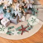 48″ Large Christmas Tree Skirt, Coastal Rustic Beach Christmas Holiday Starfish Pattern Tree Mat Base Cover for Xmas Festive Holiday Party Decoration Ornaments