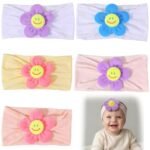 5 Pezzi Fasce Bambina, Accessori Neonata, Girasole Fascia Capelli Bambina in Nylon Elasticizzato Regalo Per Bambini Per Foto, Fascia Neonato per Capelli, Morbido Copricapo Carino per Bambini Neonati