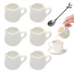 6 Pezzi Mini Brocche in Ceramica Bianca 50ml, Lattiera Piccola Ceramica con Cucchiaio, Piccole Brocche per Salsa Bianca per Latte, Caffè, Salsa, Salsa, Sciroppo