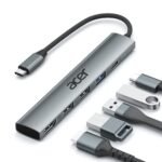 acer Hub USB C HDMI 4K, adattatore multiporta USB-C 5 in 1 in alluminio con 3 porte USB-A, alimentazione da 100 W, splitter di tipo C compatibile con acer laptop, tablet, MacBook M3/M2, XPS, iPad Pro