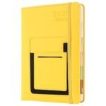 Agenda accademica 2026, formato A5, pagina al giorno, da gennaio 2026 a dicembre 2026, agenda accademica annuale con linguetta mensile colorata, tasca anteriore/interna, chiusura elastica (giallo)