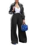 - 【Trendy Design】The bold stripes design on the sleeves, gives the sweat suit women a sporty and modern vibe. High-waisted wide-leg pants with comfortable elastic waistband and convenient pockets, adds to the comfort and fashion sense of the sweat pants.