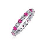 Anello Eternity Impilabile Alternato Cubic Zirconia Rosa Scuro Bianco Per Donne Rubino Simulato Argento Sterling .925 Mese Di Nascita Luglio