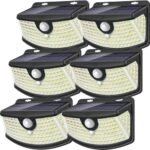 Aootek New Solar Motion Sensor Lights 120 LEDs with Lights Reflector,270° Wide Angle, IP65 Waterproof, Step Lights for Front Door, Yard, Garage, Deck (Black, Daylight White, 6-Pack)