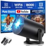 [App Integrata & 2026 Upgraded] Mini Proiettore 4K Supporta 18000 lumen, AKIYO O2 Proiettore Portatile WiFi 6 BT 5.4, Auto Keystone, Ruotabile 180°, Dual Control Compatibile con HDMI/Phone/Laptop