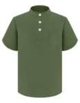 Arshiner Ragazzi Camicia Manica Corta Henley Camicia Estiva Tinta Unita Camicia Regular Fit Casual Tempo Libero Camicia da Ragazzo in Lino