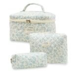 Aucuu Beauty Case, 3 Pezzi Floreale Grande Capacità per Il Trucco, Borsa da Toilette Trapuntata, Beauty Case da Viaggio Cotone Morbido, Beauty Trapuntato Grandei da Toilette Makeup Bag Organizer
