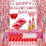 - 【130+ Pieces, Extra-Large Quantity for Any Group Size】: This value-packed set includes 130+ decorations: 1x pink table cover, 2x pink foil fringe curtains, 1x “HAPPY GALENTINES DAY” balloon, 2x red lips balloons, 2x lipstick balloons, 4x heart-shaped balloons, 20x latex balloons (red/pink/printed), 100x hanging hearts, 3x ribbons, glue dots, and a straw for inflation. Perfect for larger gatherings, and if your party is smaller, simply save the extra balloons and décor for your next celebration.