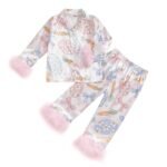 - Design: Baby girl sleepwear, baby girl two piece pajamas, ruffle sleeve button down shirt, solid pants, casual and fashion baby loungewear, suitable for baby autumn and winter wear