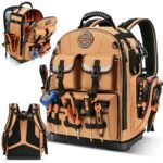 Backpack Tool Bag – LOKASS Tool Backpack Heavy Duty Tool Organizer, Water-resistant HVAC Tool Backpack Electrician Tool Box with Molded Base Tan Brown
