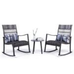 - Complete 3-Piece Set – Includes two rocking chairs with comfortable seat cushions and lumbar pillows, plus a matching faux stone-top side table for a cohesive and inviting outdoor setup.