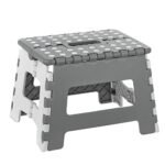 Baroni Home Sgabello Pieghevole Ultra-Resistente, Portata 130 kg, Salvaspazio per Cucina, Bagno, Giardino, Bambini e Adulti, 29x22x22 cm, M Grigio Chiaro