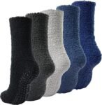 BenSorts Gripper Slipper Socks for Men Fuzzy Warm Hospital Socks with Grips Cozy Non Slip Stocking Stuffers Gifts 5 Pairs Black Grey Blue