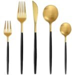 Bestdin Set Posate 6 Persone, 30 Pezzi Posate Nero Oro Opaco, Set Cena con Coltello Forchetta Cucchiaio, Set Posate in Acciaio Inox di Alta Qualità, Lavabile in Lavastoviglie