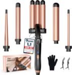 BESTOPE MIX Ferro Arricciacapelli 5 in 1- Set Ferro Arricciacapelli Rivestimento in Ceramica, Piastra Onde per Capelli 2 Température, Piastra per Onde con Ferri di Diverso Diametro, Calore Delicato