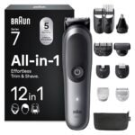 Braun Rifinitore All-In-One Series 7, Rasoio Elettrico Barba 12In1, Taglia Peli Naso E Orecchie, Macchinetta Per Capelli, Lama ProBlade, Tecnologia AutoSense, Wet&Dry, AIO7545, Grigio