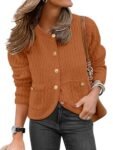 Caracilia Women’s 2025 Fall Cardigan Sweaters Knitted Dressy Casual Jackets Trendy Outfits Burnt Orange XL