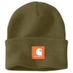 Carhartt Men’s Knit Rubber Patch Beanie, Dark Bronzed Green, One Size