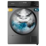 • L’asciugatrice a pompa di calore da 9 kg è perfetta per le famiglie numerose che gestiscono grandi quantità di bucato in un solo ciclo. Con una classe energetica E (ex A++), garantisce efficienza energetica e prestazioni ecosostenibili ed economiche. La tecnologia a pompa di calore riscalda l’aria con un liquido, asciuga i vestiti, raffredda l’aria nel condensatore e immagazzina la condensa, consentendo all’aria fresca e asciutta di riavviare il ciclo.