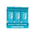 Chilly Salviettine con Antibatterico, Salviette per l’Igiene Intima, Azione di Difesa, Tessuto 100 % Biodegradabile, Ottimi Fuori Casa, PH 5, Clinicamente Testato, Confezione da 6 Pezzi
