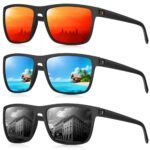 CIFOYA Polarized Sunglasses for Men Women, Square Sun Glasses for Driving Fishing Golf Lightweight Fashion Square Sun Glasses 100% UV400 Protection 3 Packs (Black/Ice Blue/Orange)