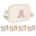 - [SEWN Chenille Letter Patch on Girls Ivory Fanny Pack] Puffy embroidered chenille letter patch A-Z stitched permanently on this Ivory fanny pack for girls, fashion waist pack teen girl gifts trendy stuff for girls every big day like Graduation Appreciation Dance Recital Performance First Communion.