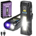- 5 modalità di illuminazione con 3 interruttori indipendenti — @ Interruttore UV principale – luce nera UV 395nm per valutazioni di oggetti antichi, polimerizzazione di resine UV, individuazione di vermi del pomodoro. Interruttore bianco principale – luce bianca brillante. Interruttore laterale @COB – ciclo Bianco brillante, Rosso brillante, Rosso stroboscopico. Dite addio al fastidio di passare da una modalità all’altra. Può anche funzionare come luce da lavoro, rimanendo saldamente in piedi da sola per l’uso a mani libere come le ispezioni in auto grazie alla base magnetica.
