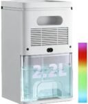 Deumidificatore Casa Muffa Elettrico 2200ML Anti Muffa Portatile – Ultra Silenzioso,Timer 2-12h,Spegnimento Automatico|LED 7 Colori|Per Bagno,Camera,Armadio (Bianco Air)