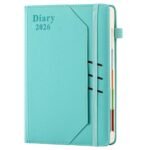 - Diario accademico 2026, pagina al giorno con tempo: linguette mensili colorate, chiusura elastica, copertina rigida in ecopelle, tasca frontale e tasca posteriore, portapenne, 2 segnalibri a nastro, carta spessa 80 g/m², resistente all’inchiostro. Il regalo perfetto per chiunque voglia prendersi deliberatamente del tempo per se stesso nella nostra frenetica società. Regala più consapevolezza e gioia con questo diario per donne e uomini.