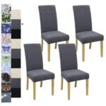 Dining Chair Covers, Jacquard Stretch Kitchen Chair Covers, Dining Room Chair Cover Set of 4, Detachable Washable Chair Covers, Chair Slipcovers, for Home, Restaurant, Banquet (Sea Wave, Grey)
