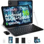 DOOGEE U11 Android 16 Tablet 11 Pollici, 16GB+128GB/2TB TF Tablet con Tastiera, 90Hz, 8580mAh, 7.9mm Thin, Unisoc T7200 Octa Core/13MP/Widevine L1/Face ID, Tablets con Penna & Mouse & Case – Nero