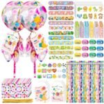 - Giant Lollipop Party Favors: You’ll get 12 gift sets, including 12 pencils, 12 bookmark rulers, 12 stickers, 12 slap bracelets, 12 sharpeners, 12 tags, 12 erasers, and 12 giant lollipop containers—this all-in-one set fully covers your needs for party favors.