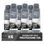Dove Deodorante Dove Men + Care Invisible Dry Spray Advanced Care, Deodorante Uomo, con 1/4 Crema Idratante, Formula Idratante e Anti-Macchia, Protezione Fino a 72 Ore, 6 Pezzi da 150 ml
