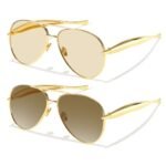 - 2 Pack for Double the Style: Get two pairs of stylish aviator sunglasses in one purchase. This 2-pack set ensures you always have a spare pair on hand, whether you’re on a long trip or just need an extra pair for different outfits.