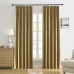 DUALIFE Gold Tan Pinch Pleated Blackout Curtains 156 Inches Long, Back Tab with Hooks, Linen Full Black Out Thermal Insulated Track Curtain for Bedroom Living Room,40 W x 156 L, 2 Panels is available on Amazon at best discounted online price. Original price of this product is $ 82.99000000000001. You can buy this product at discounted rate $ 41.49.