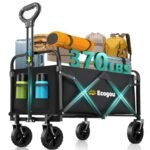 Ecogou Collapsible Wagon with Wheels, 370lbs Weight Capacity Foldable Beach Wagon with Flexible Handle Portable Utility Wagon Cart for Outdoor, Grocery, Garden, Camping