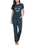 EISHOPEER Women’s Cute Printed Pajama Set Sleepwear Tops with Long Pants Peacock Blue L