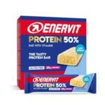- PROTEIN BAR 50% WHITE CHOCO: La barretta proteica più tecnica della linea Enervit con copertura al cioccolato bianco. Con 20g di proteine e mix di vitamine. Low sugar e senza glutine