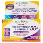 Equilibra Multivitamine e Minerali 50+, Rilascio Prolungato fino a 8 ore, Alto Dosaggio di Vitamina D, con Fosforo e Luteina, per Adulti 50+, Senza Glutine, per Vegetariani, 30 Compresse Triplo Strato