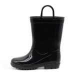 EUXTERPA Boys Girls Waterproof Rain Boots Kids Toddler Solid Color Boots with Easy On Handles, Black, Toddler Size 5