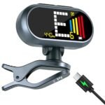 EX Professional Rechargeable Clip-On Guitar Tuner with LCD Screen – Chromatic Clip on Tuner for Acoustic Guitar, Bass Guitar, Ukulele, Violin & Chromatic, Gray