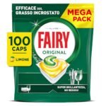 Fairy Original Pastiglie Lavastoviglie, 100 Capsule, Limone, Detersivo Con Azione Pulente Al Primo Lavaggio, Efficace Sul Grasso Incrostato Con Azione Brillante is available on Amazon at best discounted online price. Original price of this product is € 29.8. You can buy this product at discounted rate € 19.99.