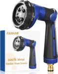 FANHAO Pistola da Giardino, 100% metallo Pistola Irrigazione Giardino, Pistola Acqua Giardino con 8 Modalità Regolabili per Doccia Giardino, Lavaggio auto, Pulizia Marciapiede e Pet Balneazione, Blu