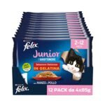 FELIX Le Ghiottonerie Junior – Cibo Umido Gattino 2-12 Mesi, Bocconcini in Gelatina con Manzo e Pollo. 48 Buste da 85 g