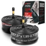 - Il pacchetto è composto da 2 camere d’aria. Dimensioni compatibili: 27,5 x 1,95 / 2,125 pollici – Adatto per pneumatici da bicicletta da 27,5″