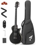 FLP350 Electric Guitar, 39″ Solid Body Electric Guitar, Electric Guitar Kit with Dual Humbuckers, Mahogany Neck, Matte Finish, 22 Frets, Purpleheart Fingerboard, Gig Bag, Strap, Cable & Picks, Black
