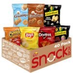- Includes 40 individually wrapped snacks: (5) bags each of Doritos Nacho Cheese, Cheetos Crunchy, Lay’s Classic, Smartfood White Cheddar, and (4) bags of Smartfood Movie Theater Butter as well as (8) bags of Grandma’s Vanilla Sandwich Cremes, Grandma’s Mini Chocolate Chip Cookies