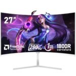 Gawfolk 27 pollici 280Hz curvo monitor per computer da gioco, 1800R,FHD 1080P, 98% sRGB, 1ms,FreeSync,178 ° grandangolo,HDMI、DisplayPort,Compatibile con il montaggio a parete 100 * 100mm – bianco